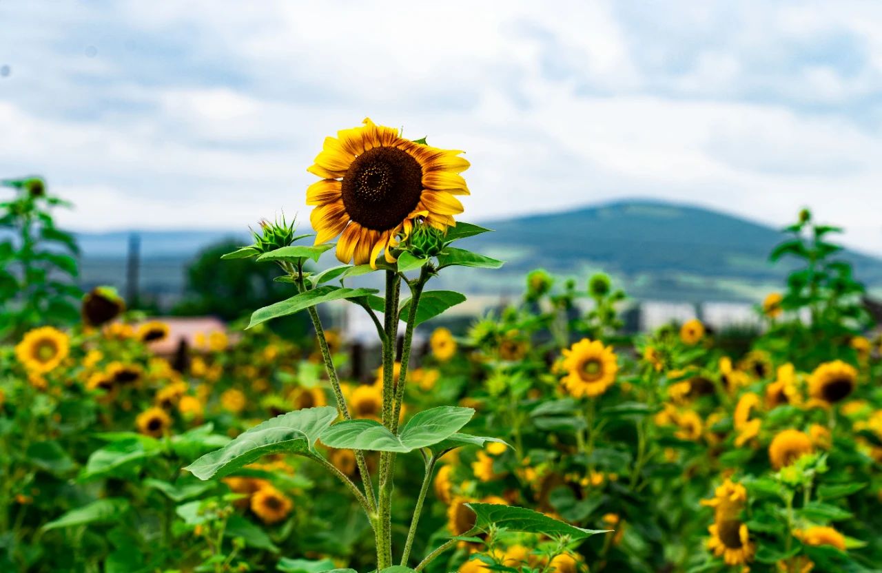 漫步花海,粉白相间的格桑花随风摇曳,宛如天边散落的云霞;橙黄交织的百日草层层叠叠,织就一片炽热的花毯;金灿灿的向日葵则始终追逐着阳光,绽放出蓬勃的生命力。微风拂过,花香沁人心脾,蜂蝶翩跹起舞,与远处青山、蓝天共同构成一幅生动的秋日画卷。