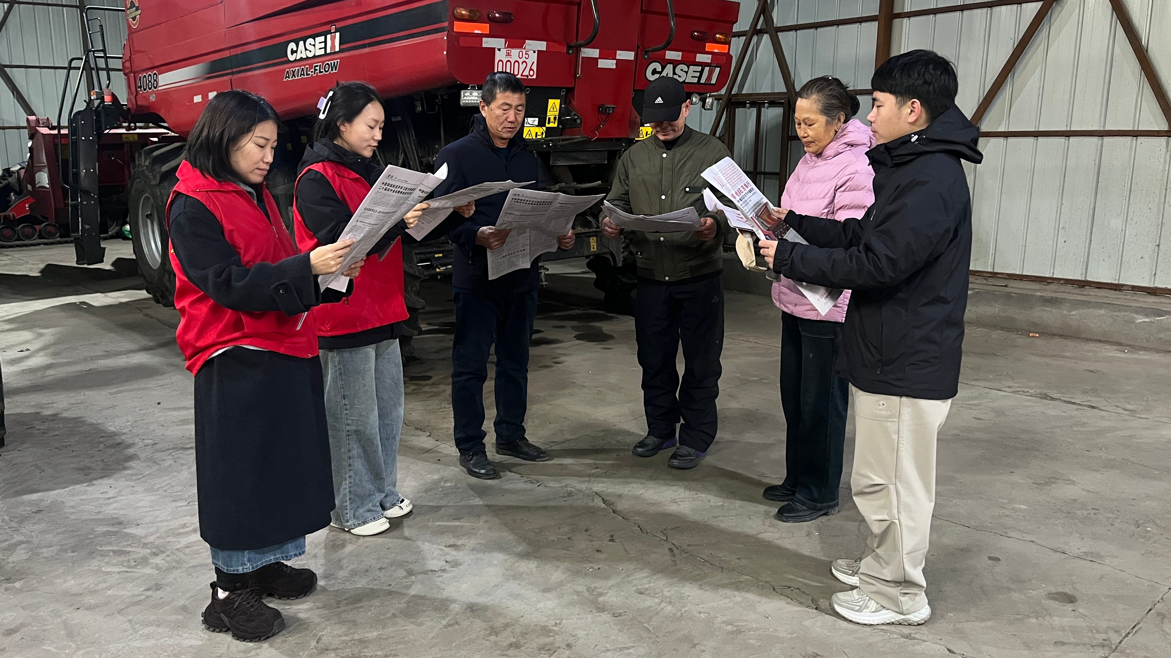 在七星镇富鑫农机有限公司,宣讲员针对农机手关心的装备升级补贴、智慧农业技术等问题,结合“提升农业综合生产能力和质量效益”要求,介绍了“十五五”期间农机购置补贴新政策,以及无人机植保、大数据灌溉等新技术应用前景。