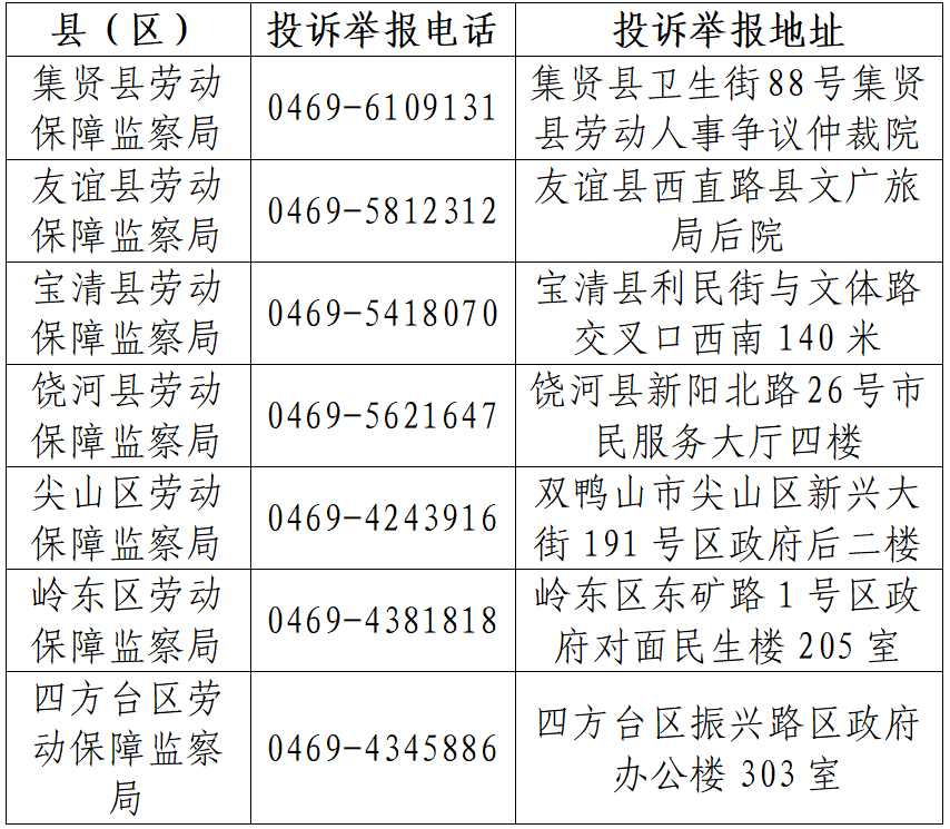 为纵深推进治理欠薪工作,从源头上防范用人单位劳动用工违法行为,切实打通劳动者维权“最后一公里”,构建“线上扫码即办+线下直通受理”的双重维权保障机制,确保劳动者“投诉有门、维权有路、诉求有应”。劳动者只需打开微信扫描“龙薪码”,按指引填报后提交线索,系统将第一时间推送至属地劳动保障监察机构,工作人员接件后全程督办,推动欠薪问题高效解决。同时为满足不同群体的维权需求,同步公开全市县(区)级劳动保障投诉举报电话与地址,实现线下维权“就近办、直接办”,具体渠道如下: